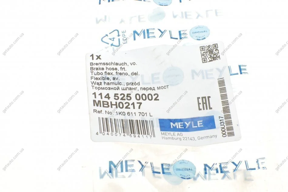 Шланг гальмівний MEYLE 114 525 0002