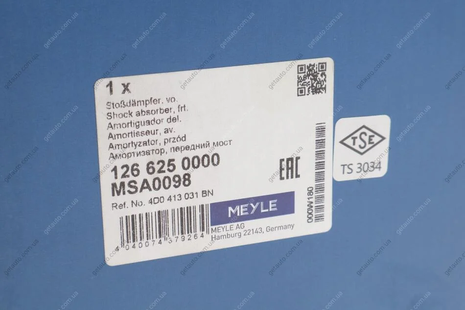 Амортизатор підв. AUDI A8 (4D2, 4D8) (03/94-09/02) передн. MEYLE 126 625 0000