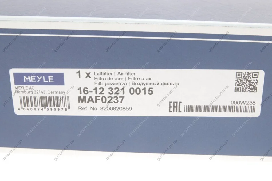 Фільтр повітряний MEYLE 16-12 321 0015