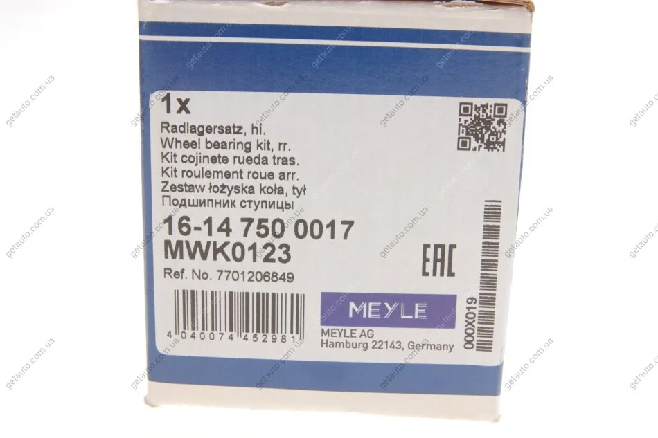 Підшипник маточини (комплект) MEYLE 16-14 750 0017
