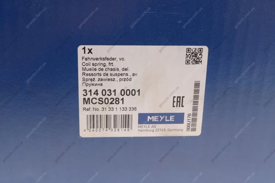 Пружина підвіски MEYLE 314 031 0001