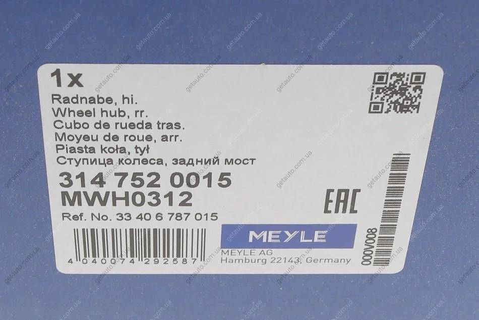 Маточина колеса з інтегрованим підшипником MEYLE 314 752 0015