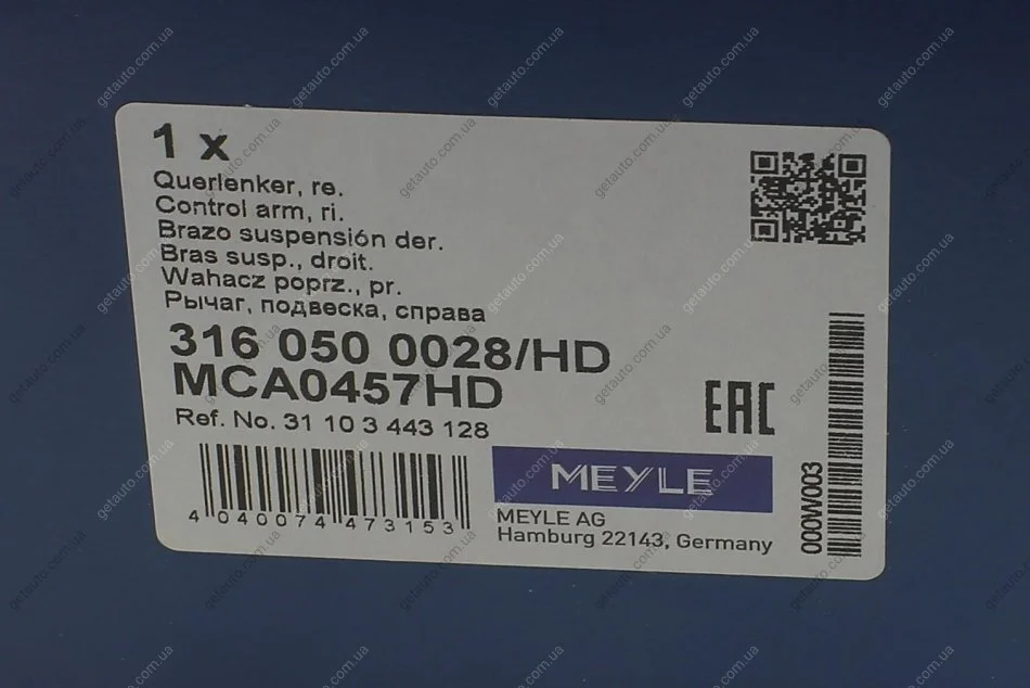 Важіль підвіски MEYLE 316 050 0028/HD