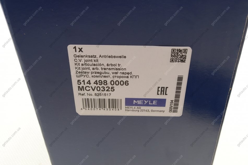 РШ шарнір (комплект) MEYLE 514 498 0006