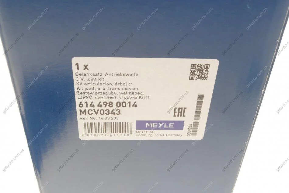 РШ шарнір (комплект) MEYLE 614 498 0014