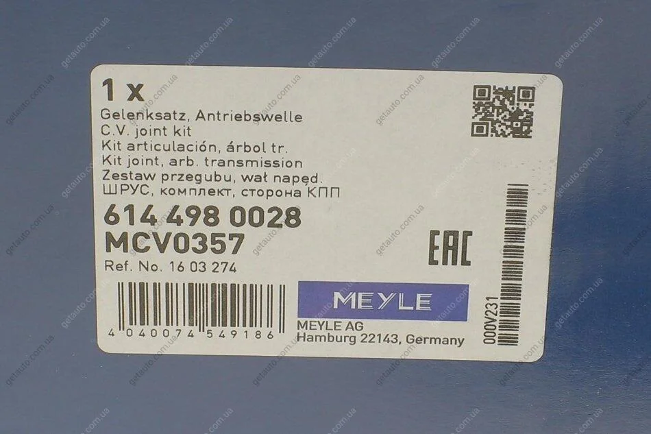 РШ шарнір (комплект) MEYLE 614 498 0028