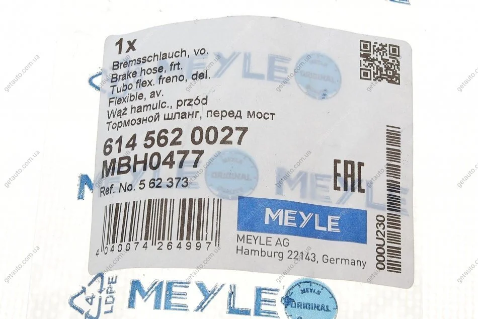 Шланг гальмівний MEYLE 614 562 0027