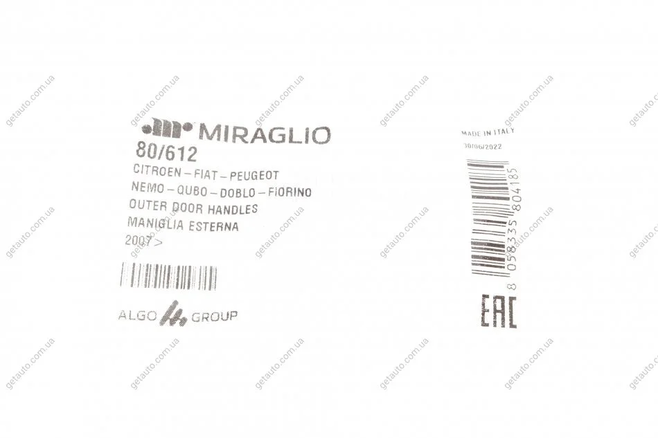 - MIRAGLIO 80/612 підходить до марок/моделей авто: