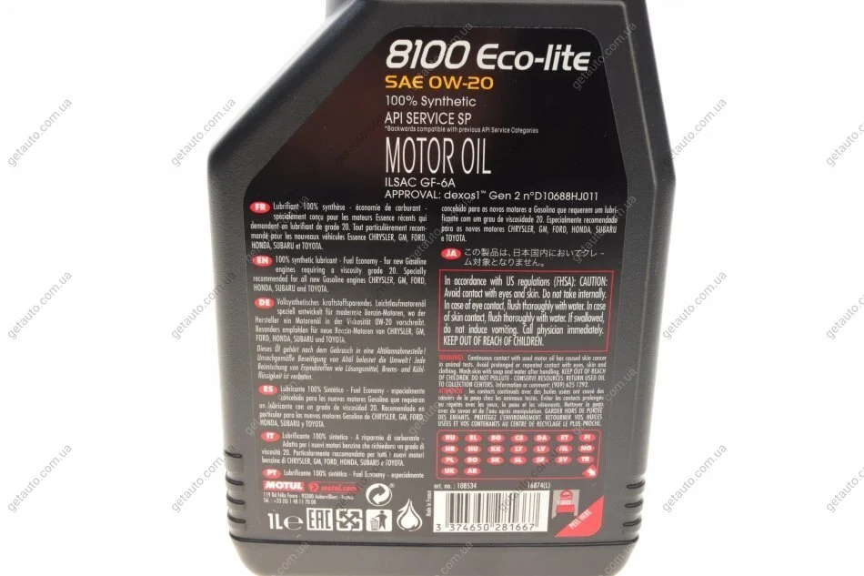 Олива мотор. 8100 Eco-lite 0W20 1L MOTUL 841111