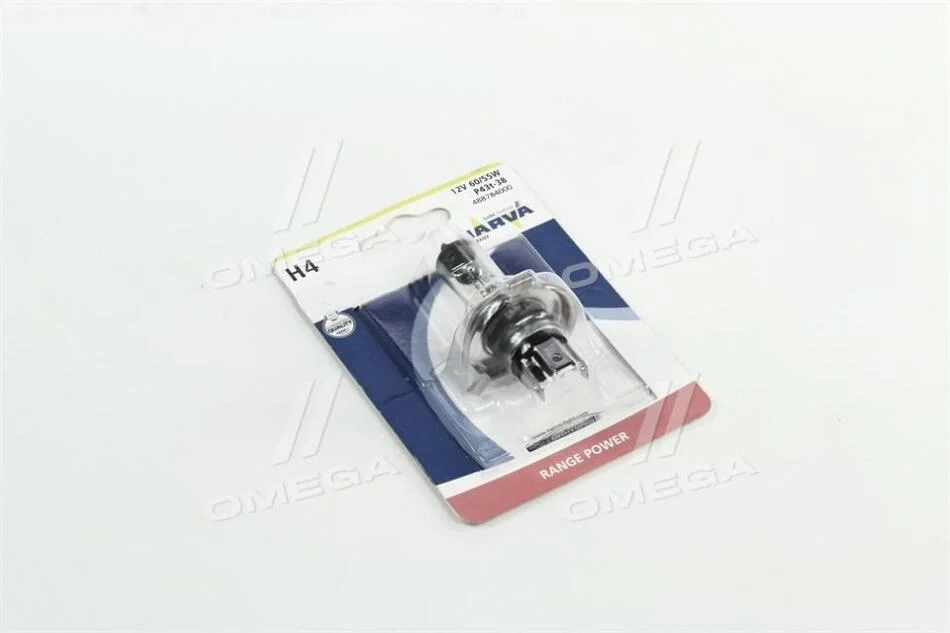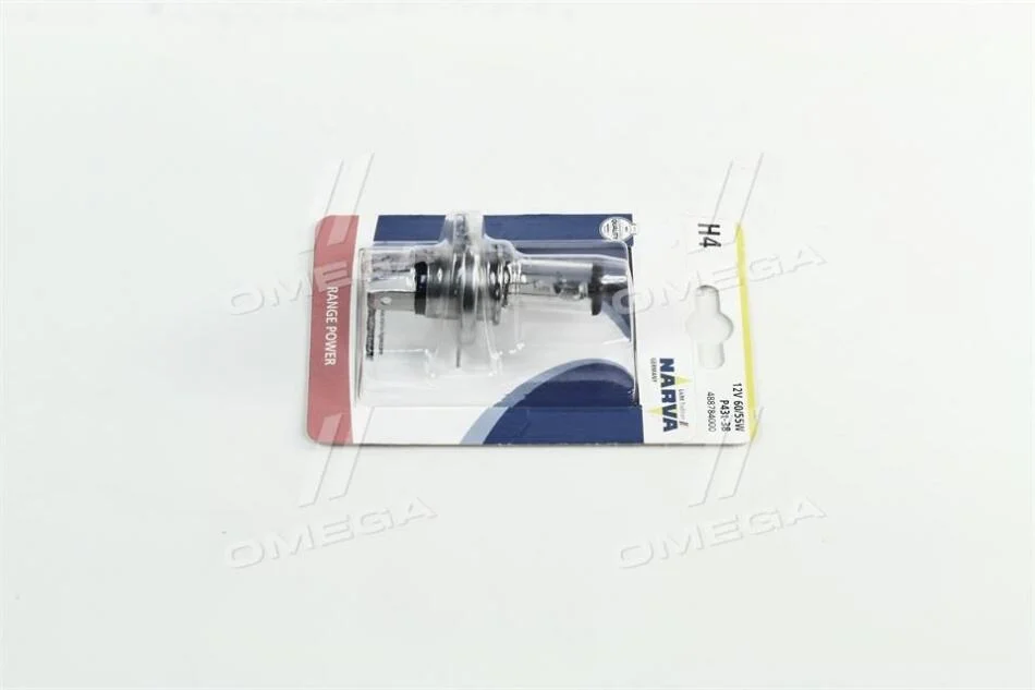 Лампа розжарювання H4 12V 60/55 W P43t RANGE POWER +30 blister NARVA 48878B1