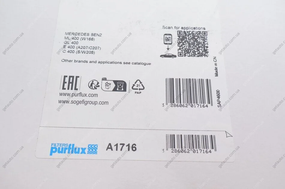 - Purflux A1716 підходить до марок/моделей авто: