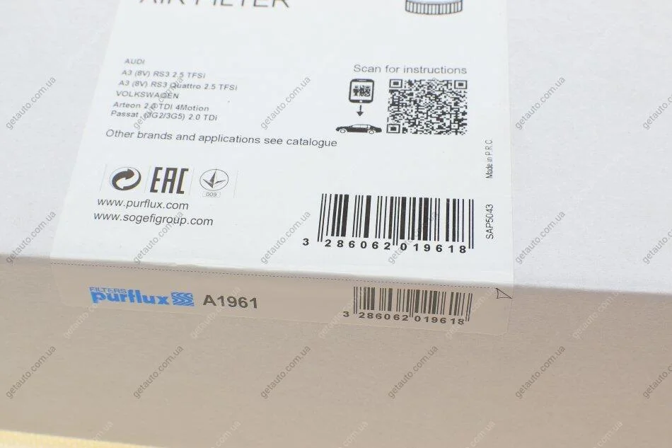 - Purflux A1961 підходить до марок/моделей авто: