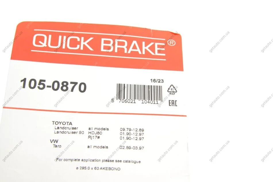 - QUICK BRAKE 105-0870 підходить до марок/моделей авто: