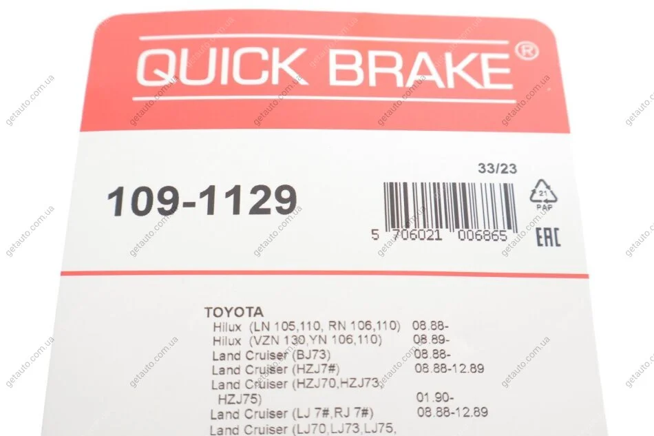 - QUICK BRAKE 109-1129 підходить до марок/моделей авто: