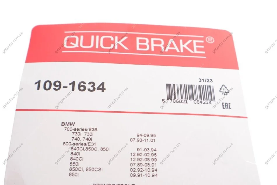 - QUICK BRAKE 109-1634 підходить до марок/моделей авто: