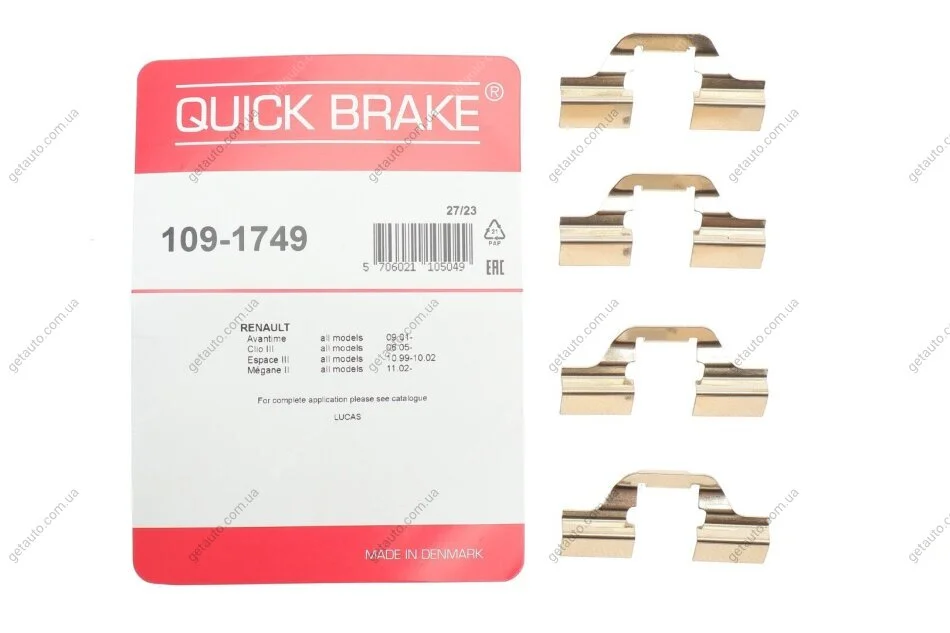 Комплект прижимних планок гальмівного супорту QUICK BRAKE 109-1749