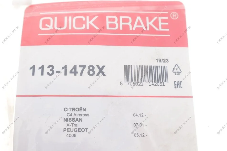 - QUICK BRAKE 113-1478X підходить до марок/моделей авто: