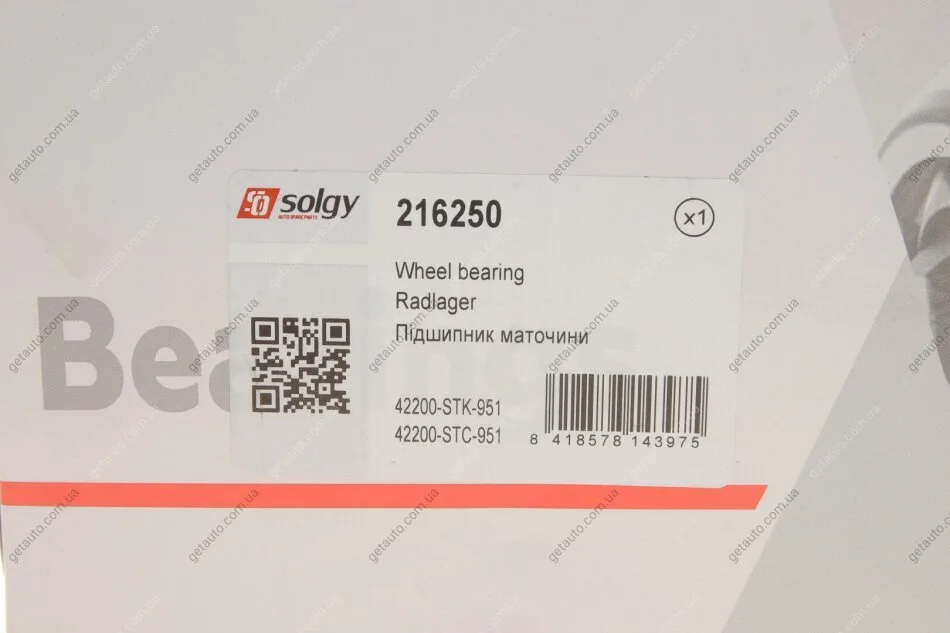 Маточина колеса з інтегрованим підшипником Solgy 216250