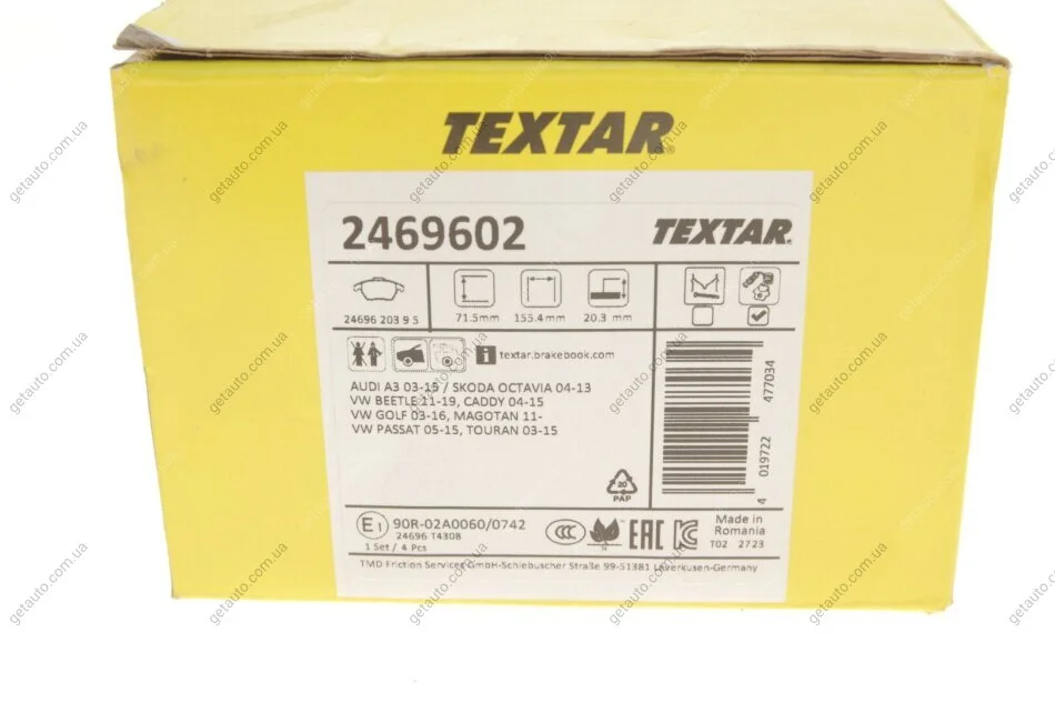 - TEXTAR 2469602 підходить до марок/моделей авто: