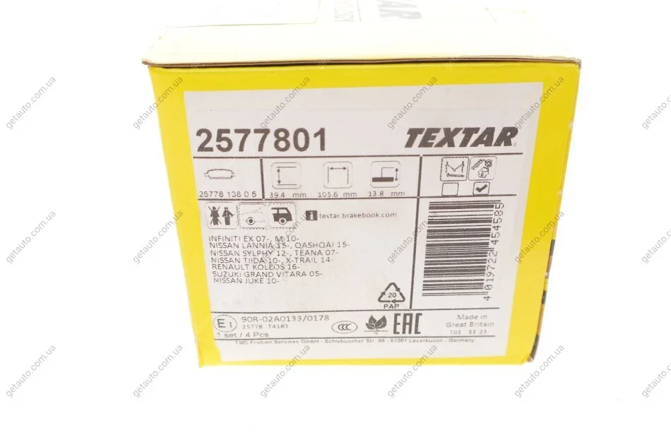 - TEXTAR 2577801 підходить до марок/моделей авто: