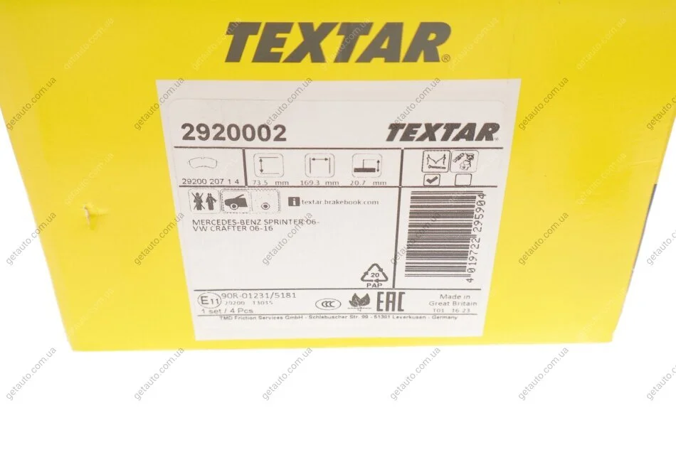 - TEXTAR 2920002 підходить до марок/моделей авто: