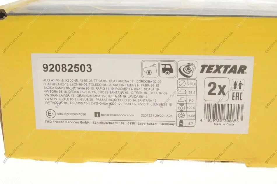 - TEXTAR 92082503 підходить до марок/моделей авто:
