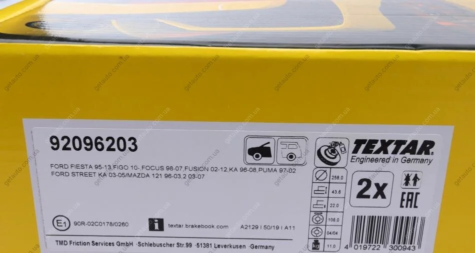 - TEXTAR 92096203 підходить до марок/моделей авто:
