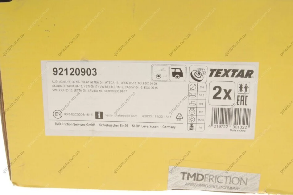 - TEXTAR 92120903 підходить до марок/моделей авто:
