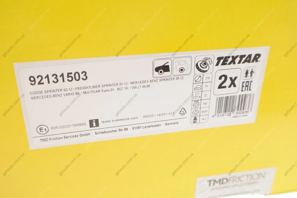- TEXTAR 92131503 підходить до марок/моделей авто: