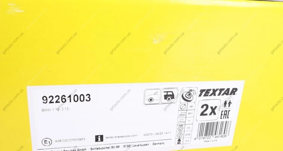 - TEXTAR 92261003 підходить до марок/моделей авто:
