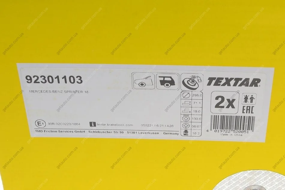 - TEXTAR 92301103 підходить до марок/моделей авто: