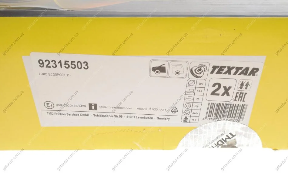 - TEXTAR 92315503 підходить до марок/моделей авто: