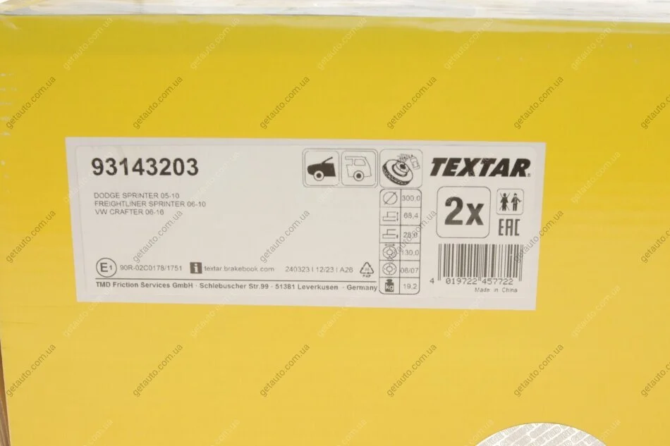 - TEXTAR 93143203 підходить до марок/моделей авто: