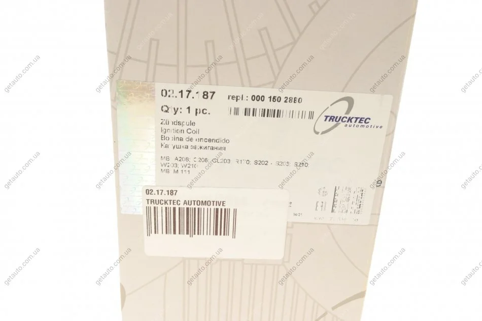 Котушка запалювання AUTOMOTIVE TRUCKTEC 02.17.187
