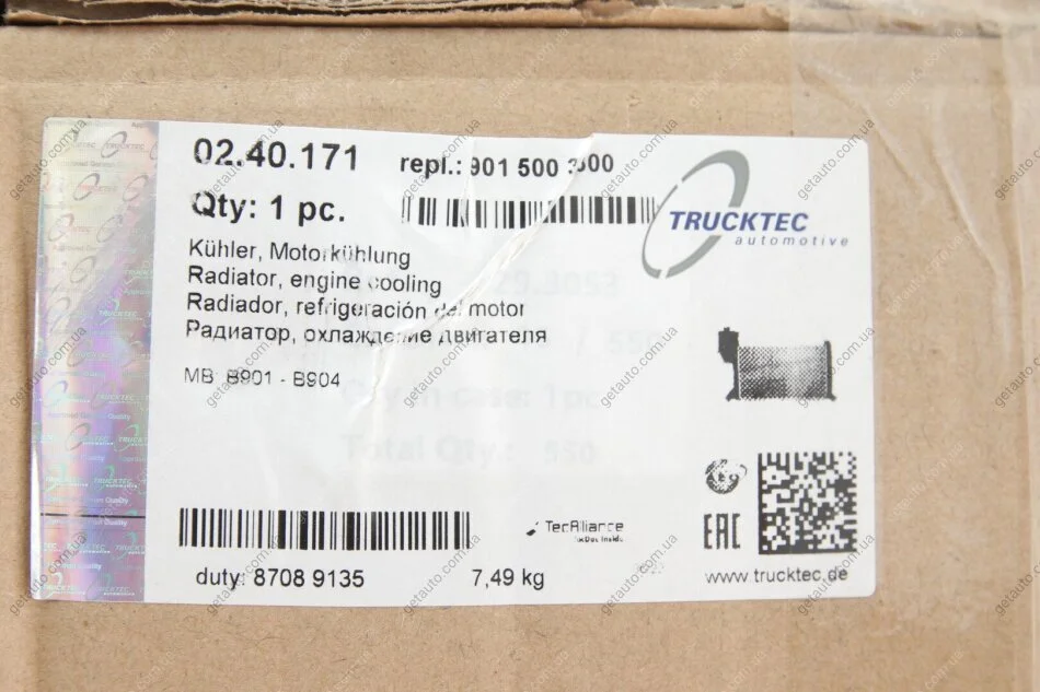 Радіатор охолодження AUTOMOTIVE TRUCKTEC 02.40.171
