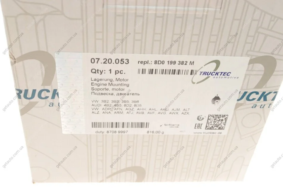 - TRUCKTEC 07.20.053 підходить до марок/моделей авто: