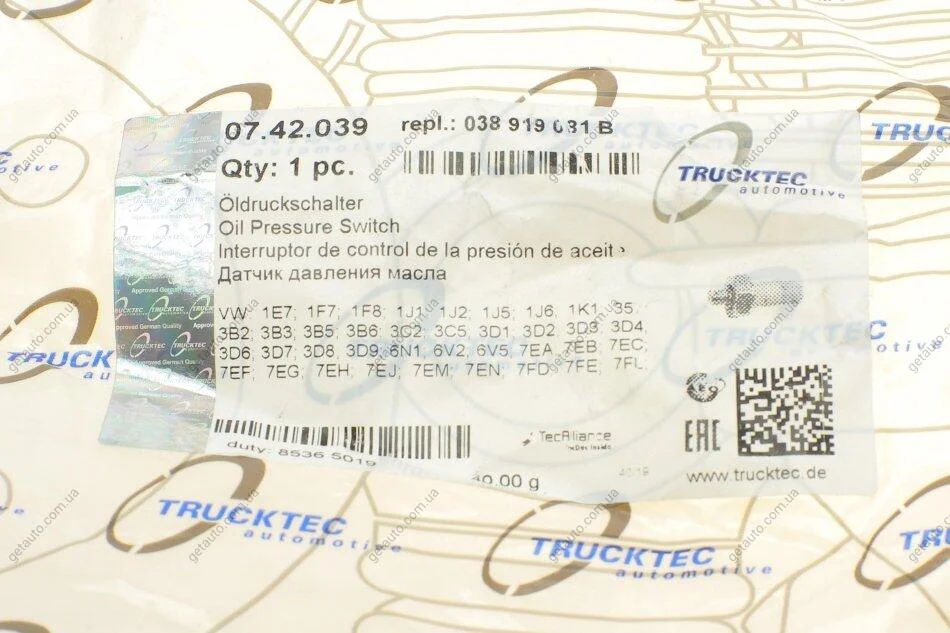 Датчик тиску оливи AUTOMOTIVE TRUCKTEC 07.42.039
