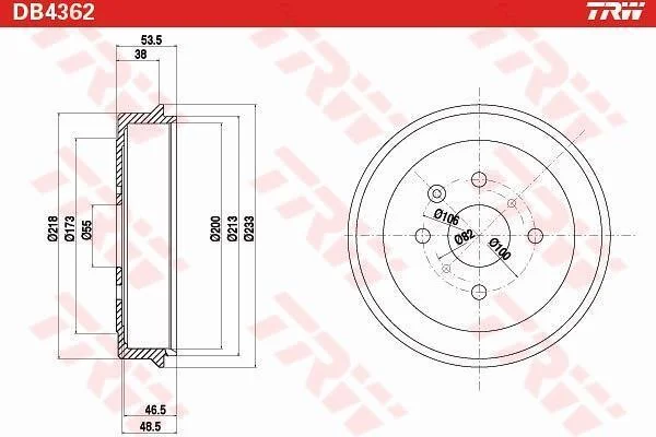 Гальмівний барабан CITROEN/PEUGEOT/TOYOTA C1/Aygo/107/108 \'\'05>> TRW DB4362