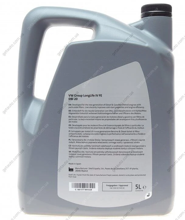 Олива моторна LongLife IV FE 0W-20 (508.00/509.00), 5л VAG GS60577M4