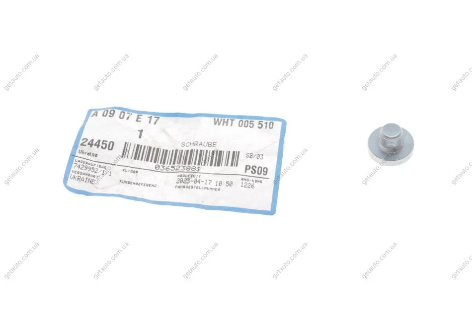 Пробка оливозливна М10*9 VAG WHT005510