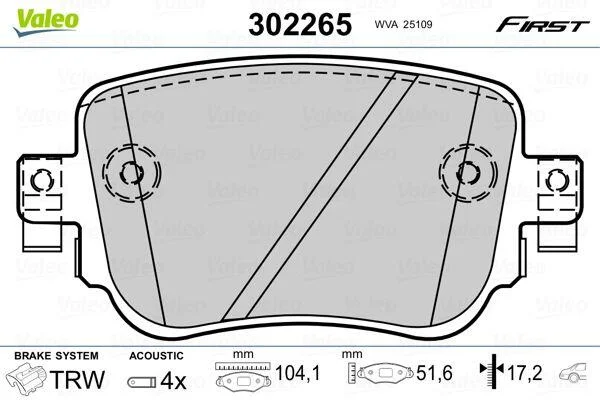 Гальмівні колодки дискові VAG/OPEL A1/Q3/Corsa/Leon/Octavia/Caddy "R "11>> Valeo 302265