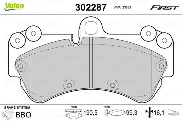 Гальмівні колодки First PORSCHE/VW Cayenne/Touareg "F "02-10 Valeo 302287