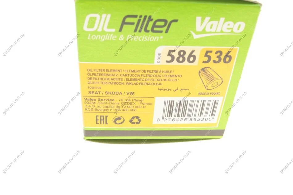 Масляний фільтр (патрон) Valeo 586536
