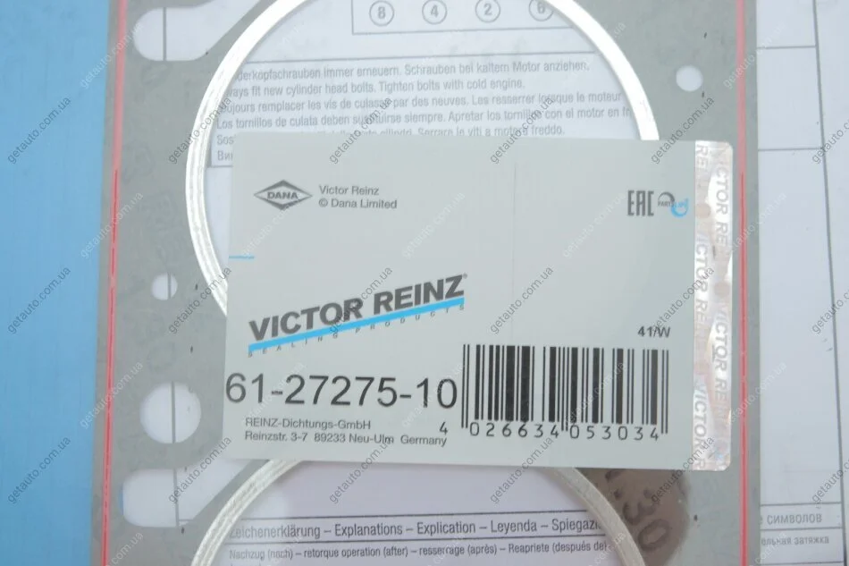- VICTOR REINZ 61-27275-10 підходить до марок/моделей авто: