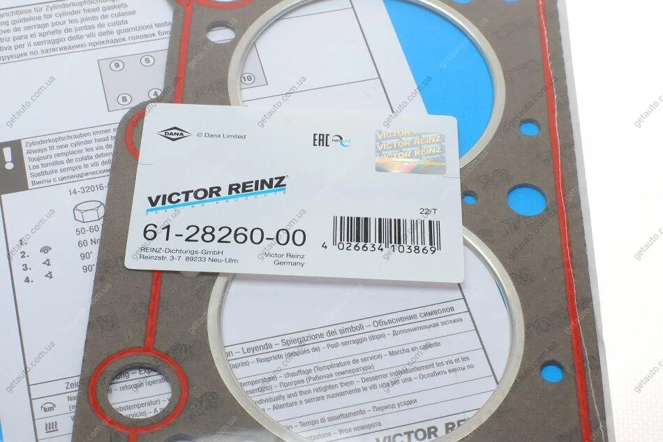 - VICTOR REINZ 612826000 підходить до марок/моделей авто: