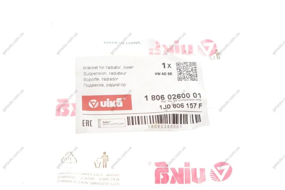 Кронштейн радіатора нижній VW Golf (96-03)/Audi A3 (97-03),TT (99-06)/Seat Leon (00-01),Toledo (99-01) Vika 18060260001