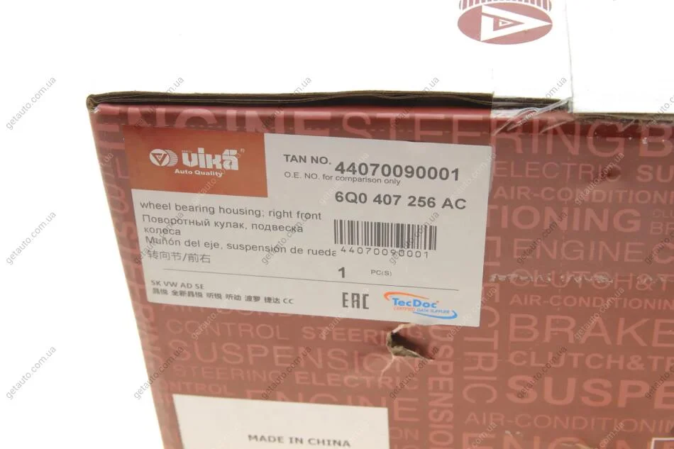 Кулак поворотний передній правий Skoda Fabia (00-14)/VW Polo (02-14)/Seat Cordoba (03-09),Ibiza (02-12,13-),Toledo (13-) Vika 44070090001