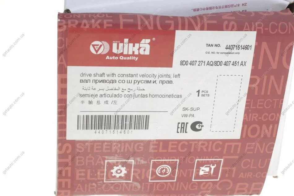 Вал приводний лівий Skoda Superb (02-08)/VW Passat (97-05)/Audi A4 (95-01) Vika 44071514601