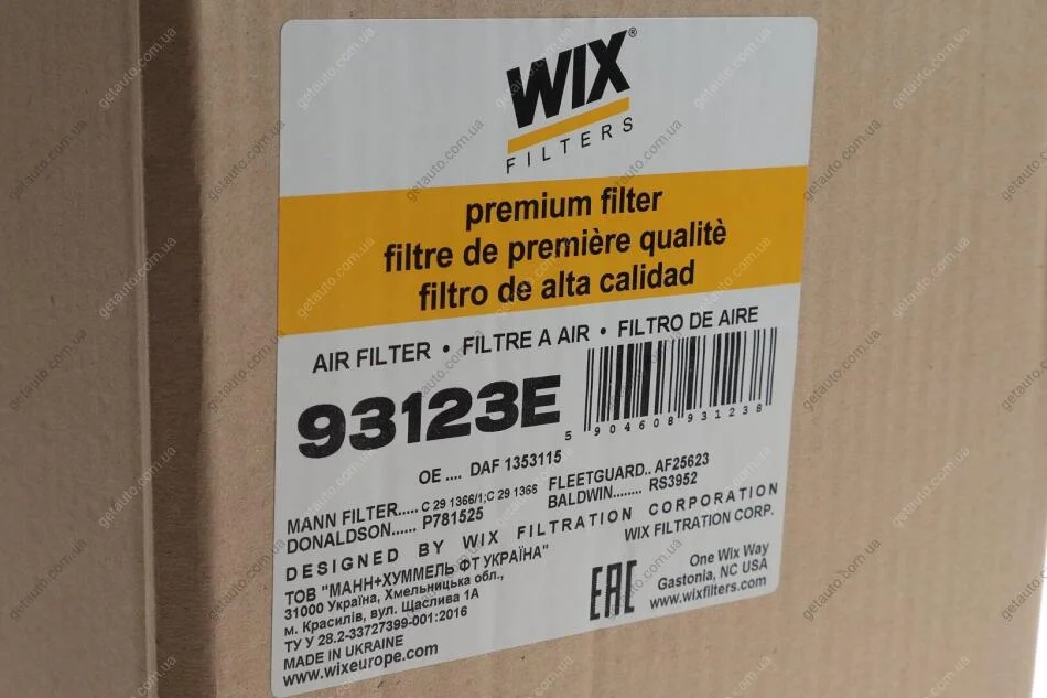 ФІЛЬТР ПОВІТРЯ WIX FILTERS 93123E