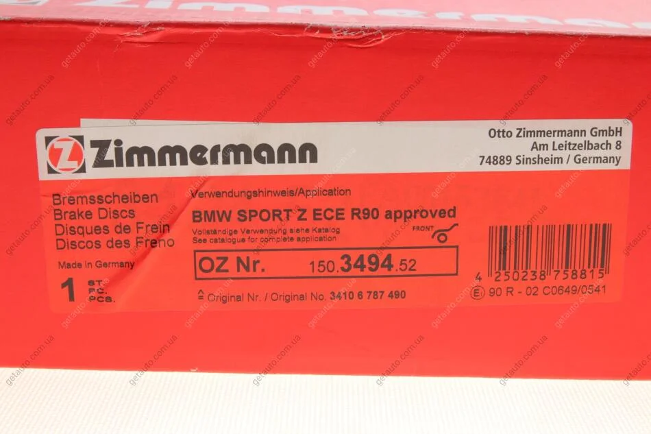 - ZIMMERMANN 150.3494.52 підходить до марок/моделей авто: